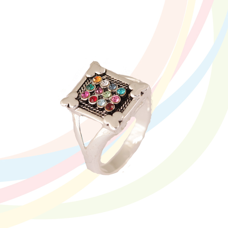 Marina Antique Silver Plated Ephod Ring with mix of stones