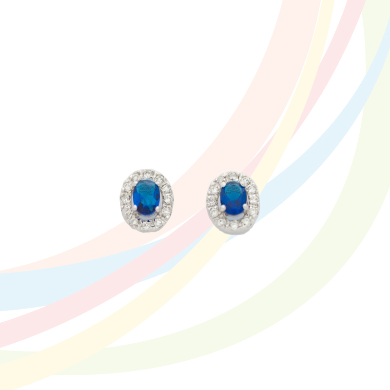 Marina Rhodium Plated Blue Sapphire and Cubic Zirconia Earrings