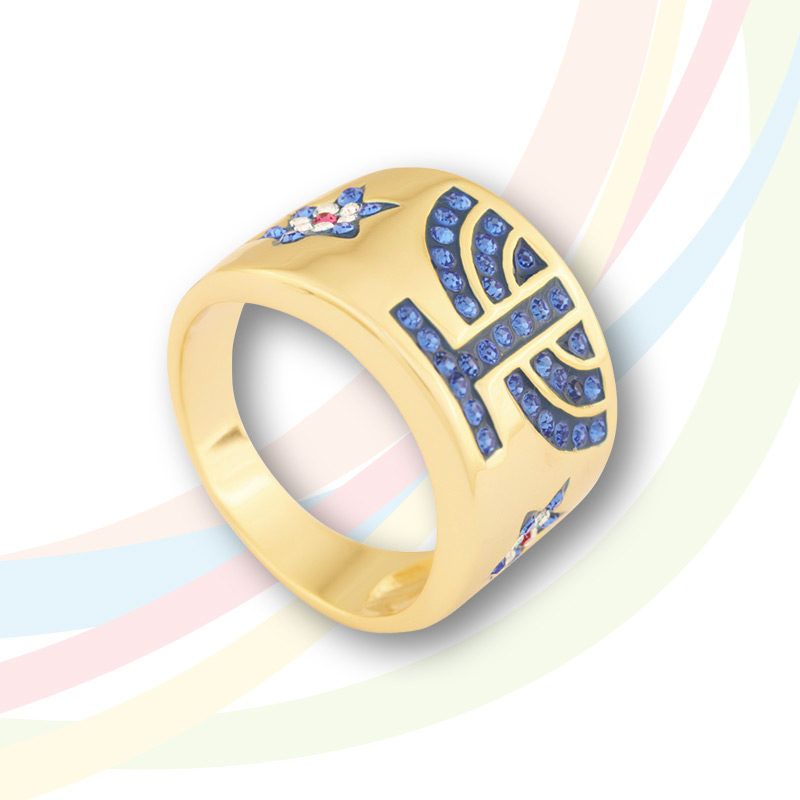 Marina Gold Plated and Cubic Zirconia Ring with Menorah in blue stone