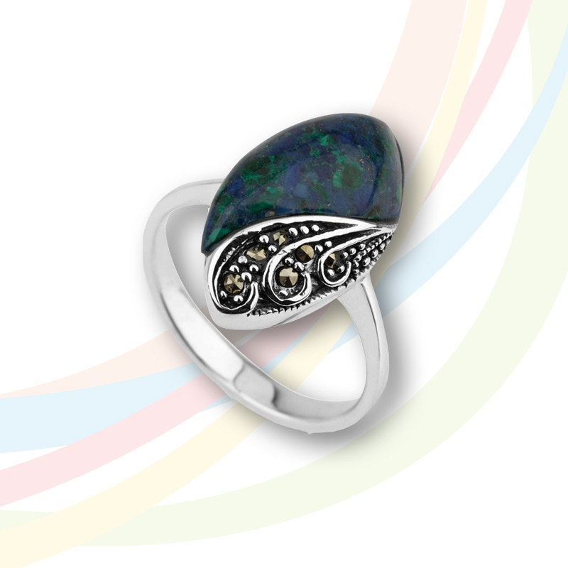 Marina Silver Eilat Stone and Marcasite Ring