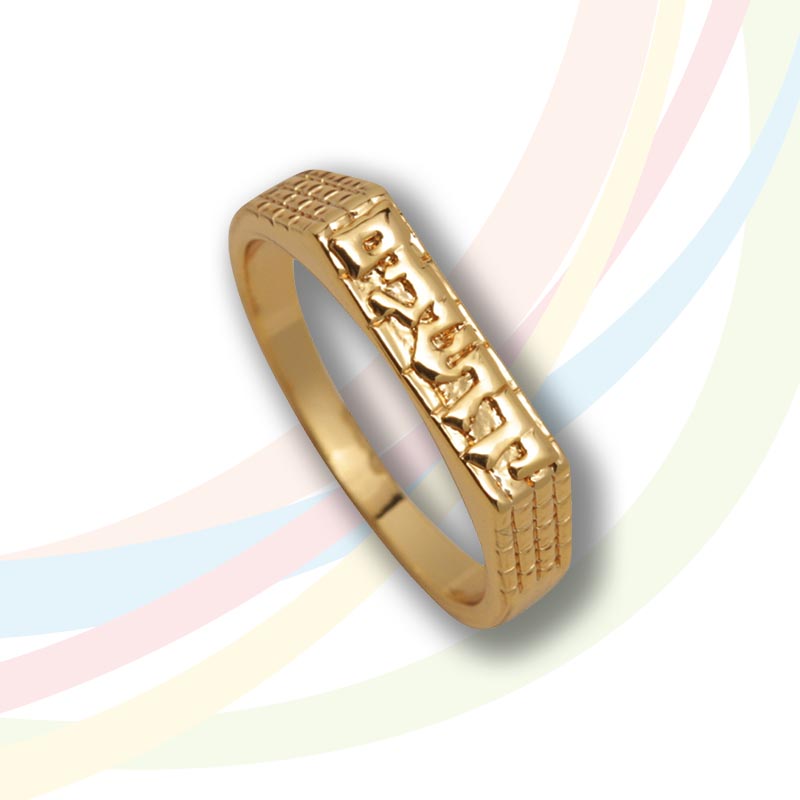 Gold Plated Ring with Jerusalem in Hebrew embossed lettering flat top