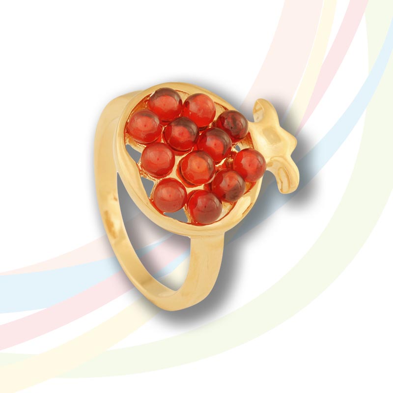 Marina Gold Plated Pomegranate Ring with Red Stones