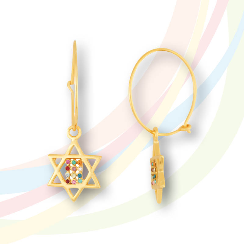 Marina Gold Plated Star of David with Ephod Stones Hoop Earrings