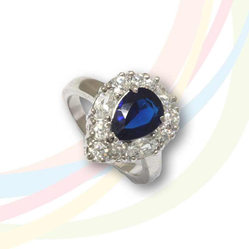 Marina Rhodium Plated Blue Sapphire and Cubic Zirconia Ring