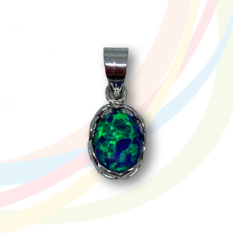 Marina Rhodium Plated Dark Blue Opal Necklace with 16″ chain