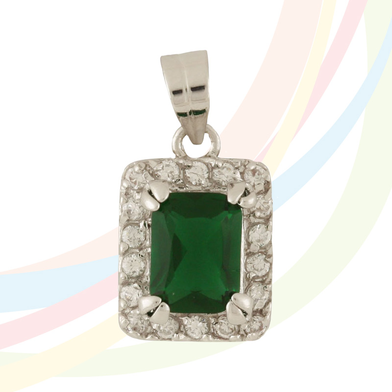 Marina Rhodium Plated Emerald and Cubic Zirconia Necklace