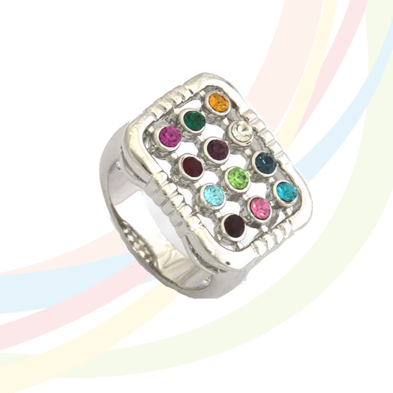Marina Rhodium Plated Ephod Ring with mix of stones