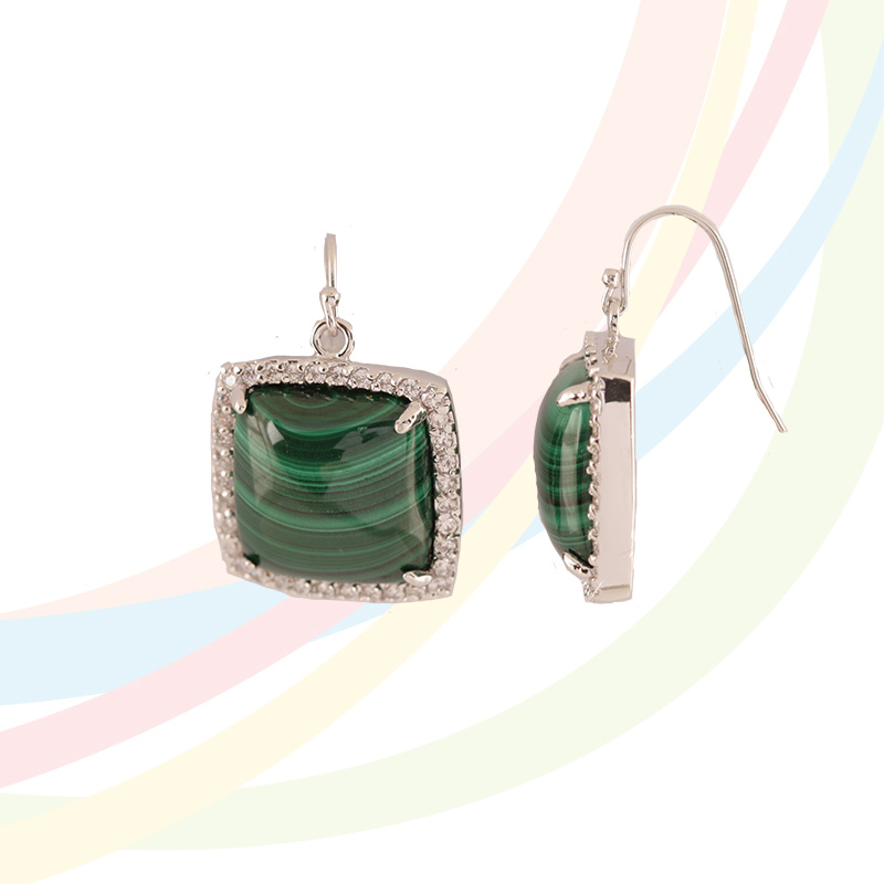 Marina Rhodium Plated Malachite and Cubic Zirconia Earrings