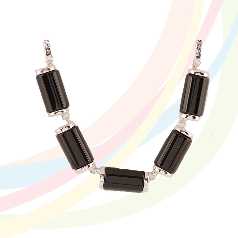 Marina Rhodium Plated Onyx Necklace