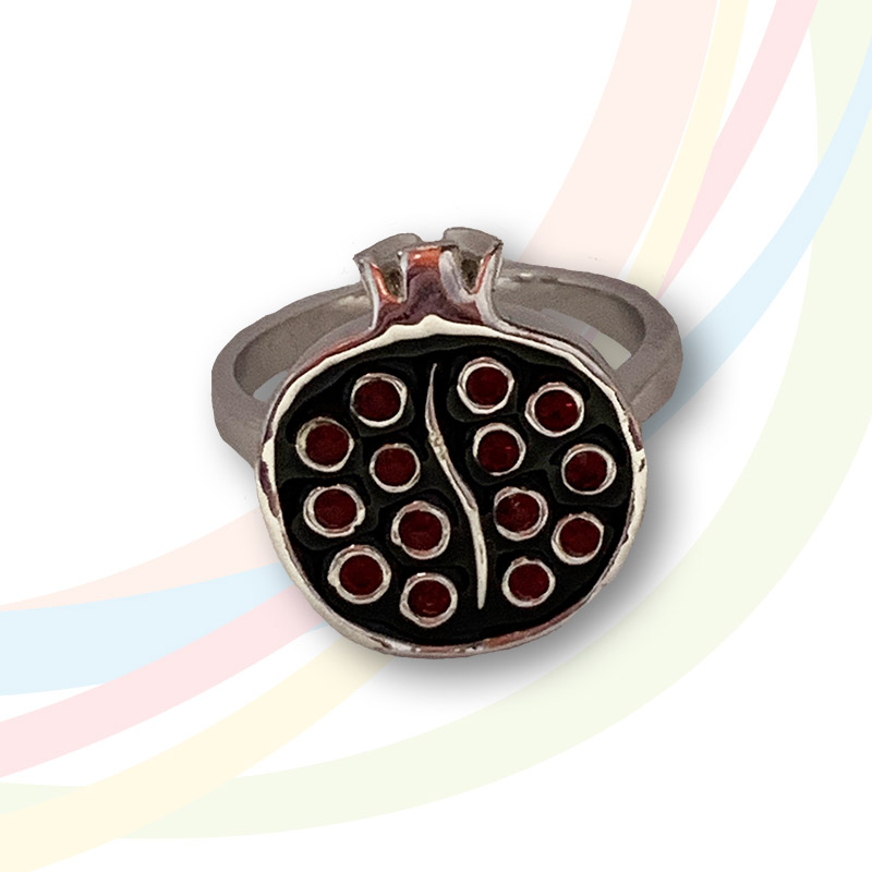 Marina Rhodium Plated Pomegranate Ring with Red Garnet