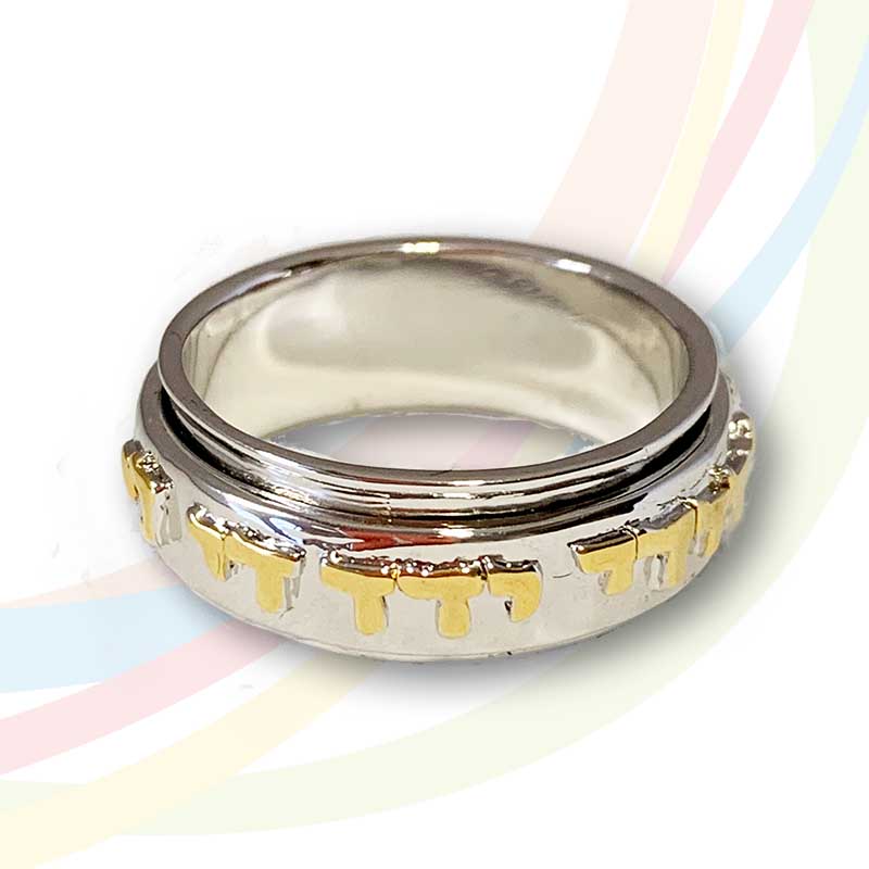 Marina Silver Ani L’Dodi Ring with Revolving Centre and Gold Plated Embossed Lettering