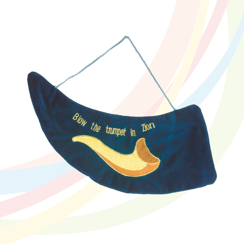 Blue Velvet Ram’s Horn Shofar Bag embroiled with ‘Blow the trumpet in Zion’.